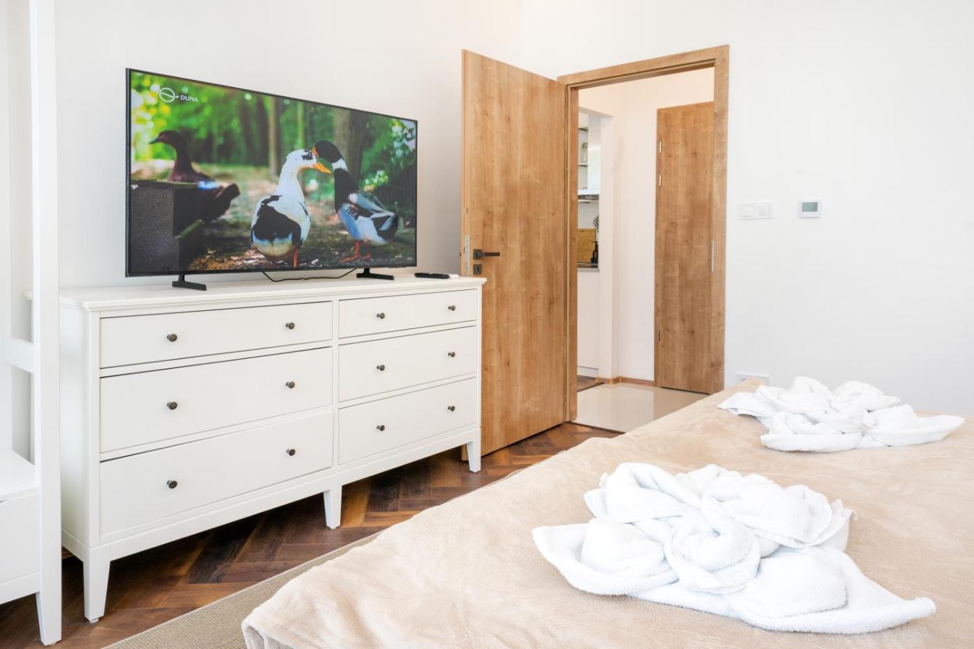 The property has 2 parking lots. One of them is located on Petőfi Promenadecar traffic is not allowed after 19:00. The other parking lot is at Karinthy Frigyes street accessible 24 hours per day.This property is located in a busy area and guests may experience noise.